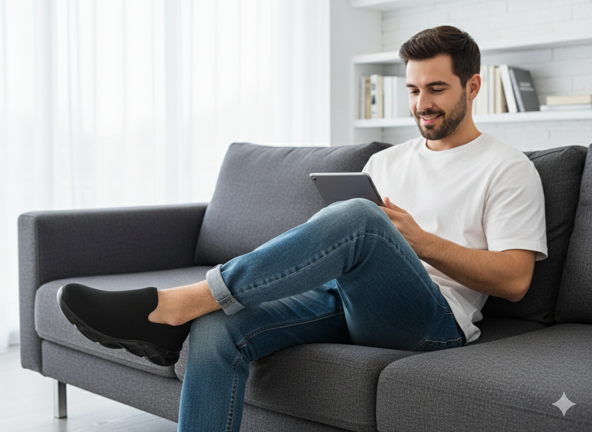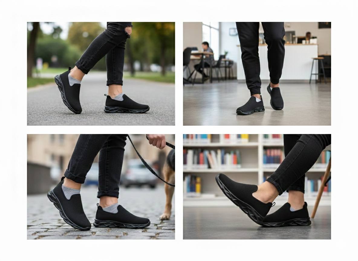 Experience effortless comfort with the All-Black Ultra-Lightweight Stealth Runner. Available in both classic lace-up and seamless slip-on versions, these shoes are engineered for those who spend all day on their feet. The breathable mesh upper and "Wave-Tech" cushioned sole provide a "walking on air" sensation from the office to the gym.